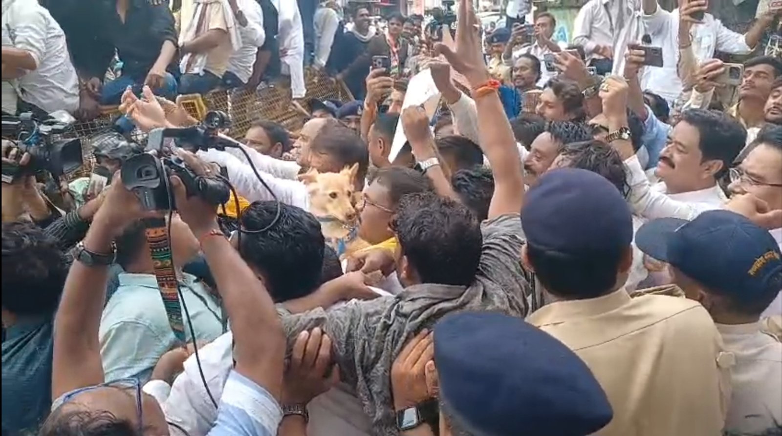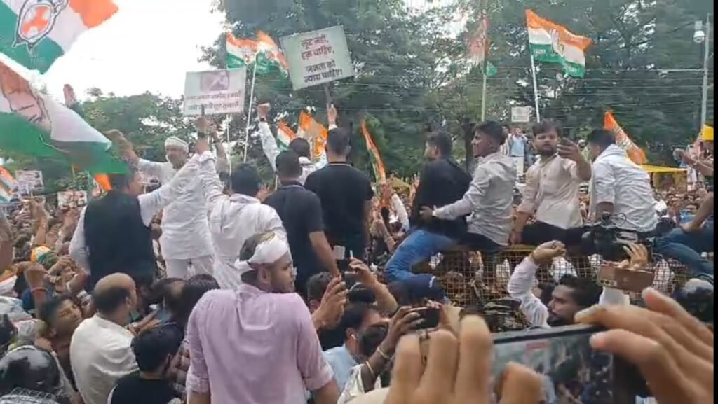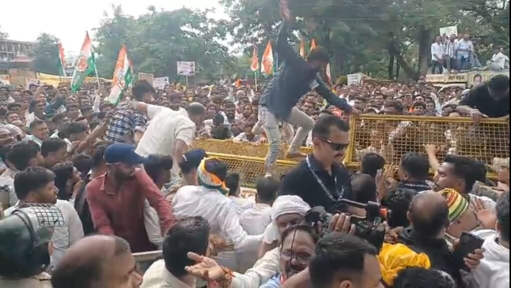 जनमत भास्कर छिंदवाड़ा:-पूर्व मुख्यमंत्री कमलनाथ के गढ़ छिंदवाड़ा में कांग्रेस ने आज किसान बचाओ आंदोलन आयोजित किया…इस दौरान जिला कांग्रेस द्वारा स्थानीय जेल बगीचे में एक विशाल आम सभा करने के बाद हजारों की तादाद में कांग्रेस कार्यकर्ताओं ने लगभग 40 मिनट तक कलेक्ट्रेट का घेराव करते हुए ज्ञापन लेने कलेक्टर के न आने पर आक्रोश में आते हुए कुत्ते को ही ज्ञापन सौंप दिया,इस दौरान वरिष्ठ कांग्रेसी नेताओं और प्रशासनिक व पुलिस अधिकारियों के बीच कई बार तीखी बहस और नोंक झोंक भी देखी गई।इस दौरान प्रदेश कांग्रेस कमेटी के अध्यक्ष जीतू पटवारी,नेता प्रतिपक्ष उमंग सिंघार,पूर्व सांसद नकुलनाथ पूर्व मंत्री,सुखदेव पांसे, विजयलक्ष्मी साधौ,लखन घनघोरिया,ओमकार मरकाम सहित आधा दर्जन से ज्यादा कांग्रेस विधायक और हजारों की संख्या में कांग्रेस कार्यकर्ता मौजूद थे।