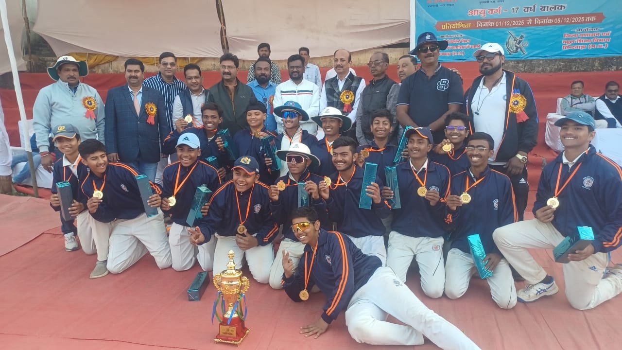 जनमत भास्कर छिन्दवाड़ा:-लोक शिक्षण संचालनालय भोपाल के निर्देशानुसार स्कूल शिक्षा विभाग छिंदवाड़ा द्वारा कलेक्टर हरेंद्र नारायण के संरक्षण में विगत 5 दिनों से संचालित हो रही मध्य प्रदेश राज्यस्तरीय शालेय क्रिकेट प्रतियोगिता का समापन पुरस्कार वितरण के साथशुक्ला ग्राउंड में किया गया। इस अवसर पर महापौर विक्रम आहाके,कार्तिक वानखेडे,अभिषेक वर्मा,बंटी सक्सेना,फील्ड ऑफिसर कादिर खान,डी ई ओ जीएस बघेल,जिला खेल अधिकारी प्रताप इनवाती,प्राचार्य विद्या भूमि सहित विभिन्न संभागों के जनरल मैनेजर,कोच,खिलाड़ी व स्थानीय संस्थाओं के प्राचार्य विशेष रूप से उपस्थित रहे।कार्यक्रम के आरंभ में स्वागत भाषण व प्रतिवेदन का वाचन डीईओ जी एस बघेल द्वारा किया गया।महापौर ने खिलाड़ियों का उत्साह वर्धन करते हुए भविष्य में भी अवसर मिलने पर उत्कृष्ट खेल का प्रदर्शन करने हेतु प्रेरित कर विजेता उपविजेता व सहभागी टीमों को अपनी शुभकामनाएं दी।प्रतियोगिता में इंदौर, भोपाल,ग्वालियरसागर,रीवा, शहडोल,उज्जैन,जनजाति कार्य विभाग,नर्मदा पुरम, जबलपुर संभाग के 160 खिलाड़ी जनरल मैनेजर,कोच ने भाग लिया।