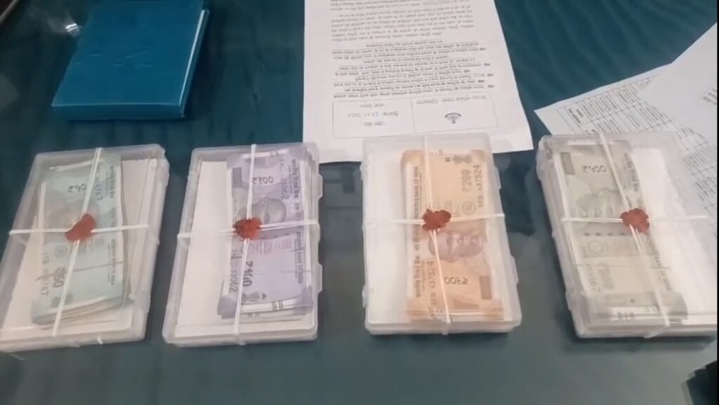 जप्तशुदा मशरूका – 500 रूपये के 18 नोट,200 रूपये के 20 नोट,100 रूपये के 30 नोट,50 रूपये के 50 नोट कुल मसरूका 18500 रूपये।