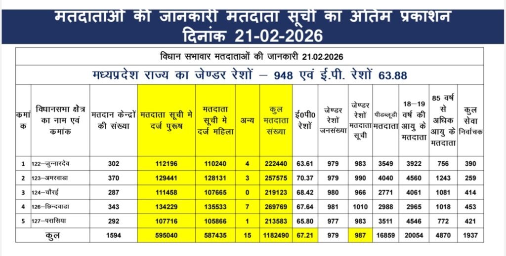 जनमत भास्कर,छिंदवाड़ा:- भारत निर्वाचन आयोग के निर्देशानुसार फोटो निर्वाचक नामावली के विशेष गहन पुनरीक्षण 2026 के अंतिम प्रकाशन के संबंध में शनिवार को कलेक्टर एवं जिला निर्वाचन अधिकारी हरेंद्र नारायन की अध्यक्षता में मान्यता प्राप्त राजनीतिक दलों की बैठक आयोजित की गई।इसके साथ ही पत्रकार वार्ता का आयोजन कर मीडिया प्रतिनिधियों को भी पुनरीक्षण कार्यक्रम तथा जिले में की गई एसआईआर के दौरान कार्यवाहियों की विस्तृत जानकारी साझा की गई।