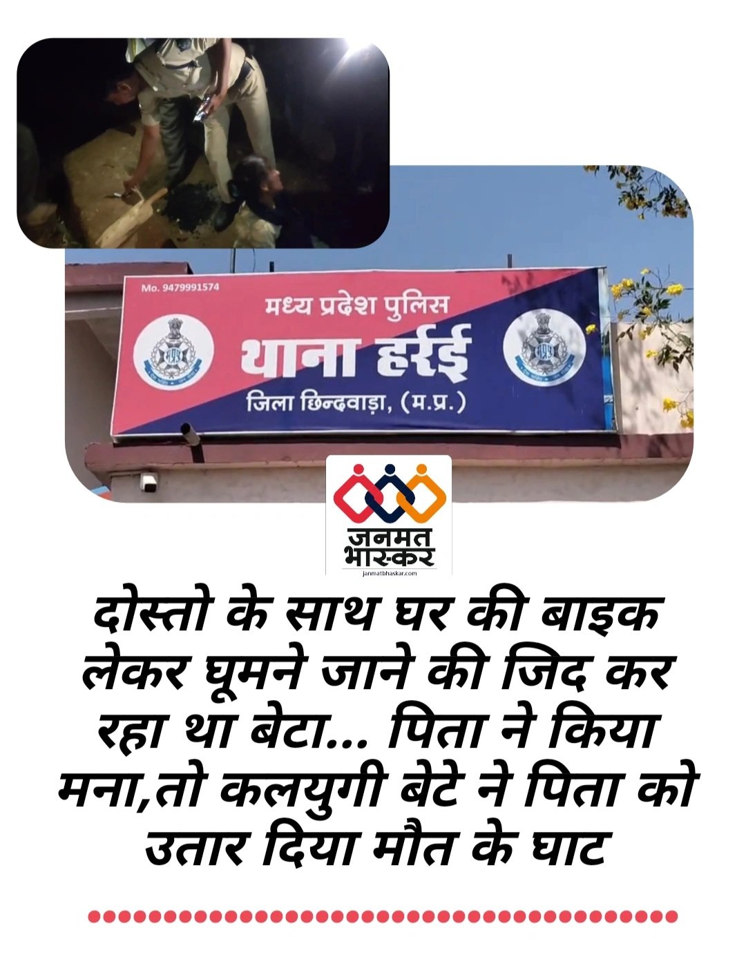 दरअसल पूरा मामला हर्रई थाना अंतर्गत ग्राम कचनरा ग्राम का है,जहाँ आरोपी पुत्र अपने पिता से मोटरसाइकिल लेकर कहीं जाने की जिद कर रहा था लेकिन पिता के द्वारा मना करने पर दोनों के बीच कहासुनी हो गई और देखते ही देखते विवाद इतना बढ़ गया कि बेटे ने गुस्से में आकर अपने पिता के साथ मारपीट शुरू कर दी और उन्हें बेरहमी से बेटनुमा लकड़ी से पीट-पीटकर मौत के घाट उतार दिया,घटना की सूचना मिलते ही पुलिस मौके पर पहुंची और शव को कब्जे में लेकर पोस्टमार्टम के लिए भेजा फिलहाल आरोपी बेटे की तलाश जारी है और पुलिस मामले की जांच में जुटी है और साथ ही घटना के पीछे के अन्य कारणों का भी पता लगाया जा रहा है।