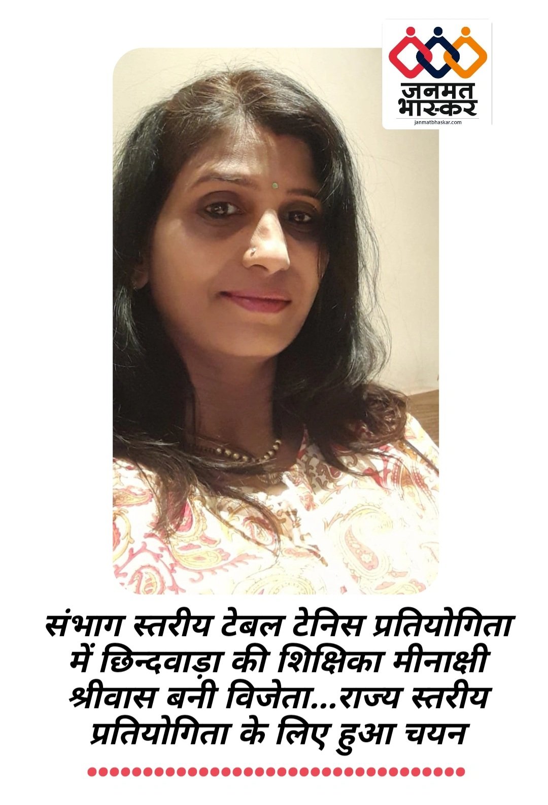 जनमत भास्कर,छिन्दवाड़ा:-स्कूल शिक्षा विभाग के निर्देशानुसार 15 एवं 16 अप्रैल को सिवनी जिले में आयोजित संभाग स्तरीय अधिकारी-कर्मचारी टेबल टेनिस प्रतियोगिता में शासकीय हाई स्कूल मालनवाड़ा की विज्ञान शिक्षिका श्रीमती मीनाक्षी श्रीवास ने शानदार प्रदर्शन करते हुए प्रथम स्थान हासिल किया।